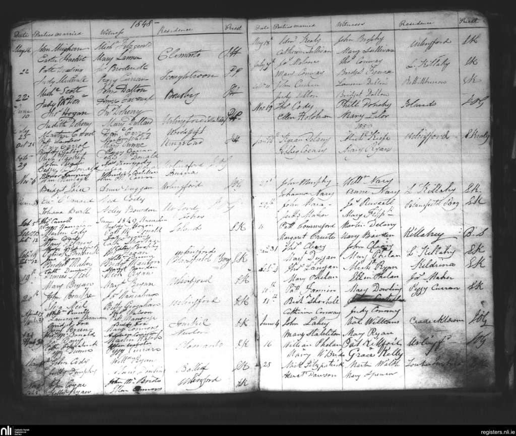 Urlingford; County of Kilkenny; Diocese of Ossory. Marriages, May 1848 to June 1850