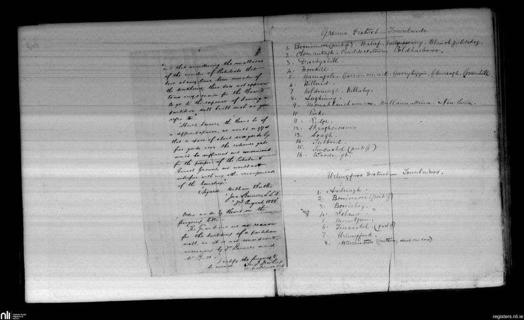 Urlingford; County of Kilkenny; Diocese of Ossory. Baptisms