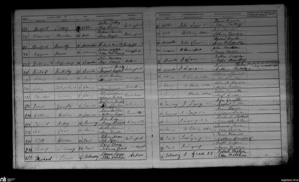 Urlingford; County of Kilkenny; Diocese of Ossory. Baptisms, Oct. 1878 to Feb. 1879