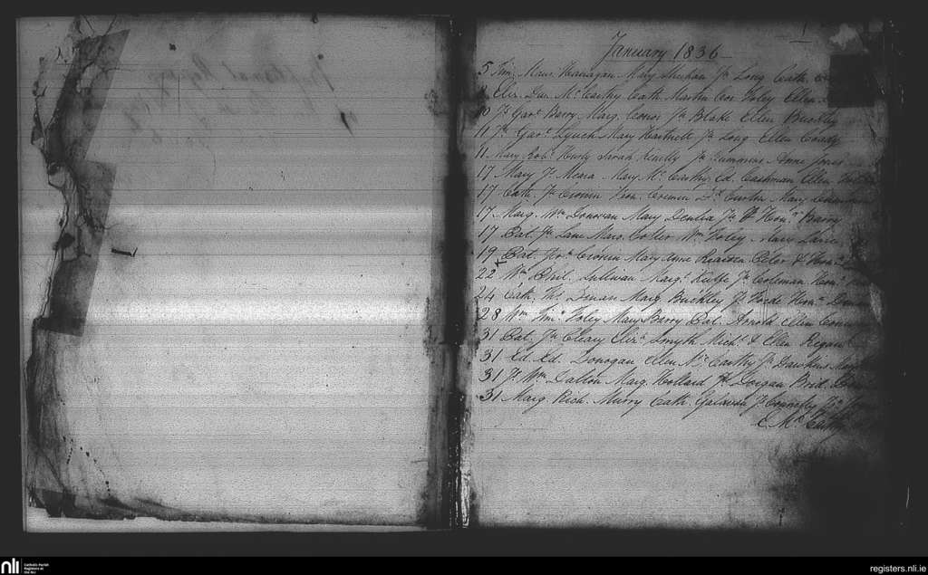 Watergrasshill; County of Cork; Diocese of Cork and Ross. Baptisms, Jan. 1836