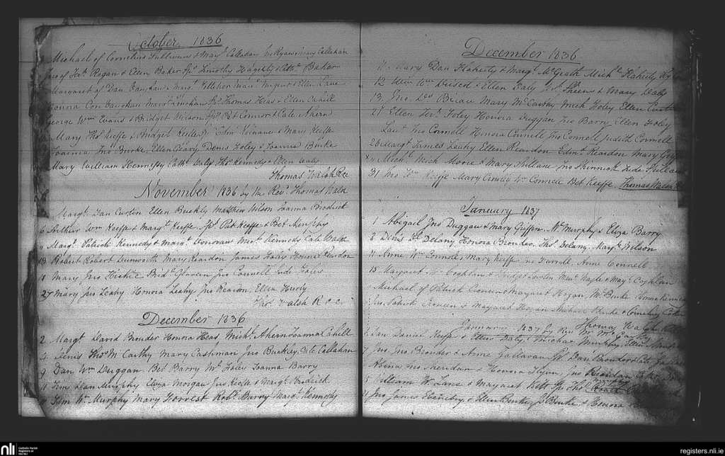 Watergrasshill; County of Cork; Diocese of Cork and Ross. Baptisms, Oct. 1836 to Jan. 1837