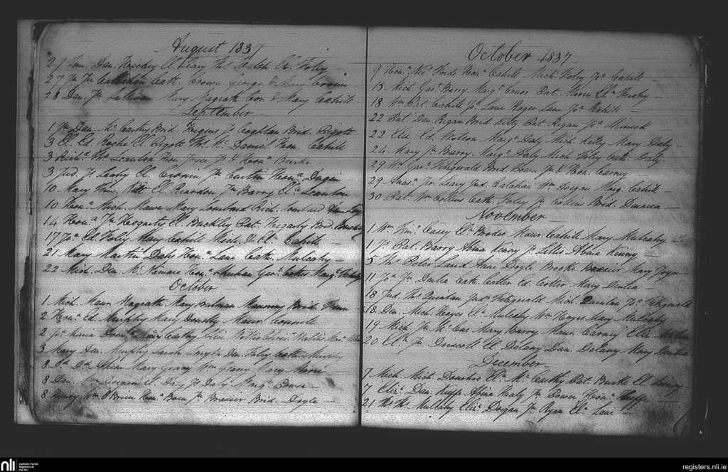 Watergrasshill; County of Cork; Diocese of Cork and Ross. Baptisms, Aug. 1837 to Dec. 1837