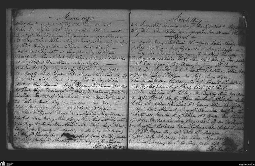 Watergrasshill; County of Cork; Diocese of Cork and Ross. Baptisms, Mar. 1839 to Apr. 1839