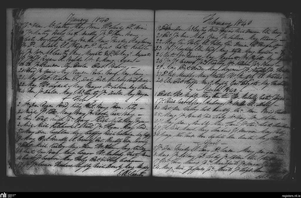 Watergrasshill; County of Cork; Diocese of Cork and Ross. Baptisms, Jan. 1840 to Apr. 1840