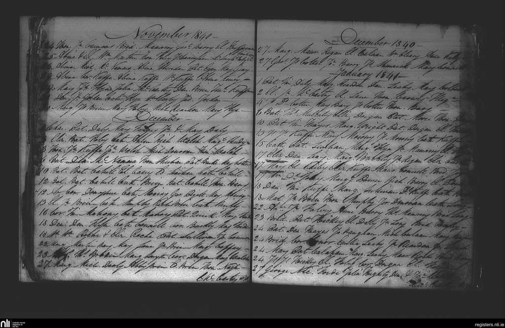 Watergrasshill; County of Cork; Diocese of Cork and Ross. Baptisms, Nov. 1840 to Jan. 1841