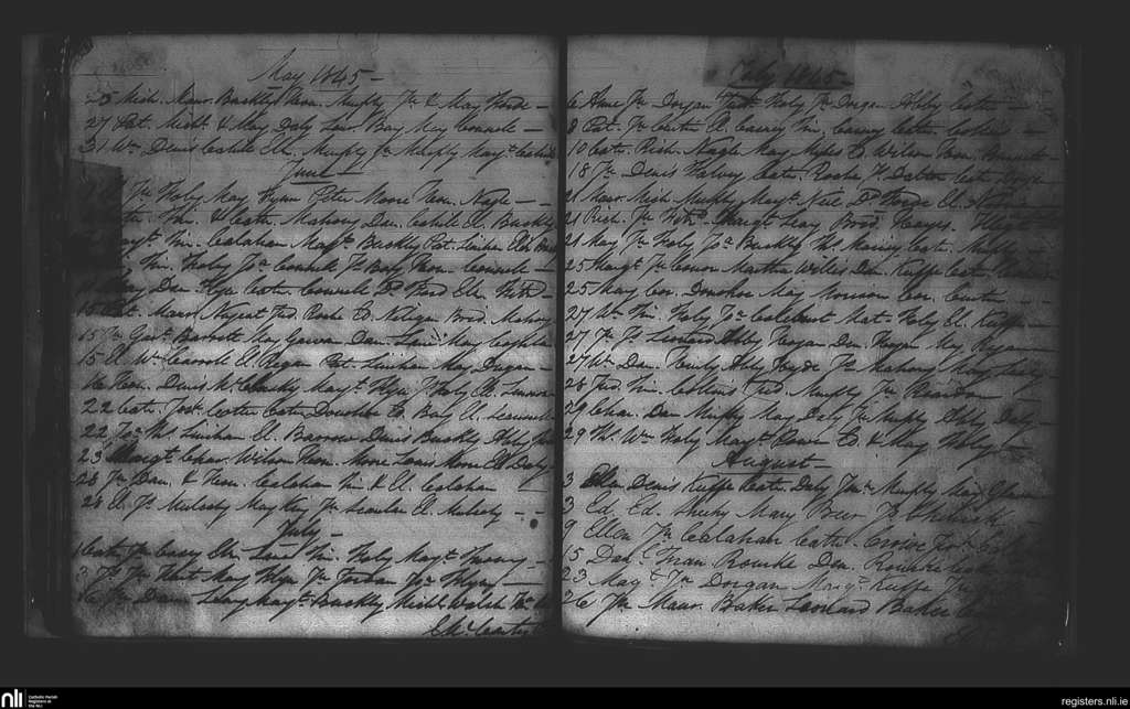 Watergrasshill; County of Cork; Diocese of Cork and Ross. Baptisms, May 1845 to Aug. 1845