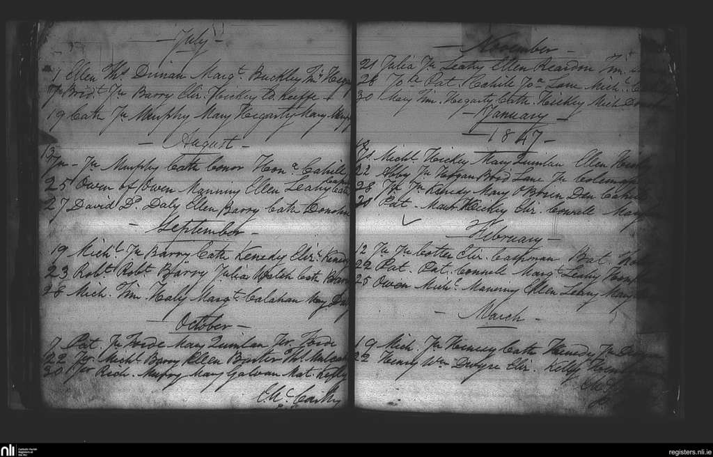 Watergrasshill; County of Cork; Diocese of Cork and Ross. Baptisms, July 1846 to Mar. 1847