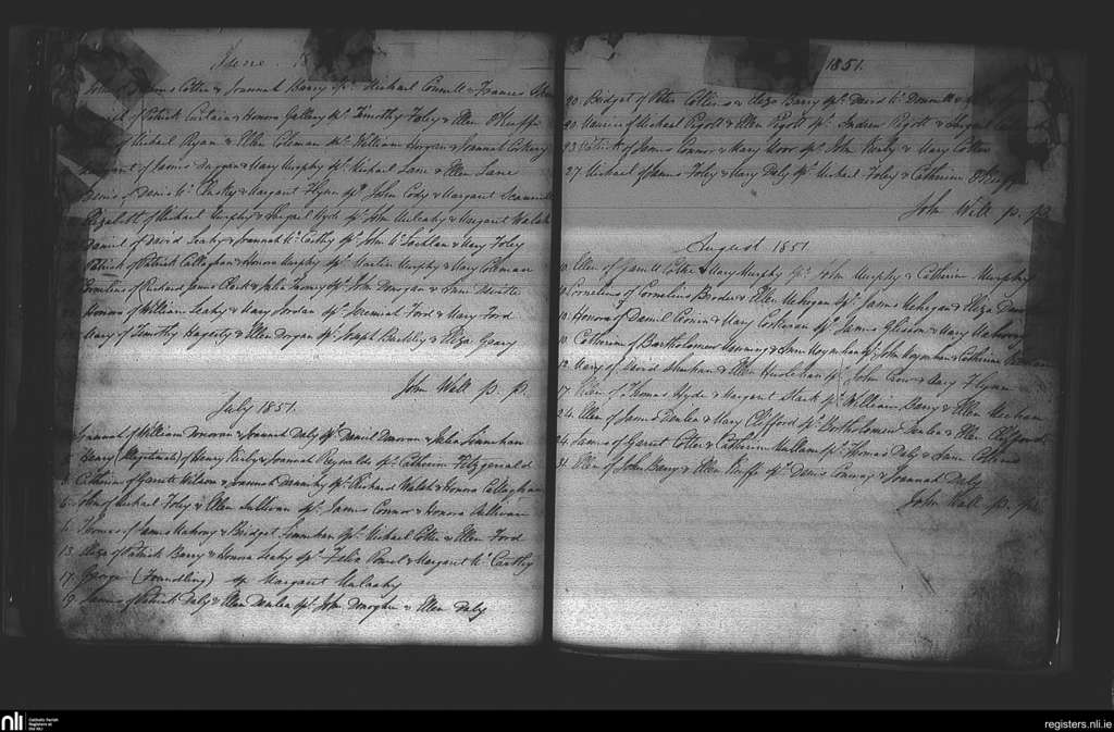 Watergrasshill; County of Cork; Diocese of Cork and Ross. Baptisms, June 1851 to Aug. 1851