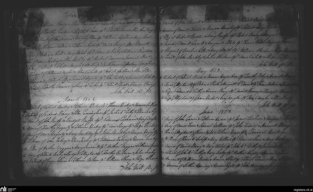 Watergrasshill; County of Cork; Diocese of Cork and Ross. Baptisms, Feb. 1852 to June 1852