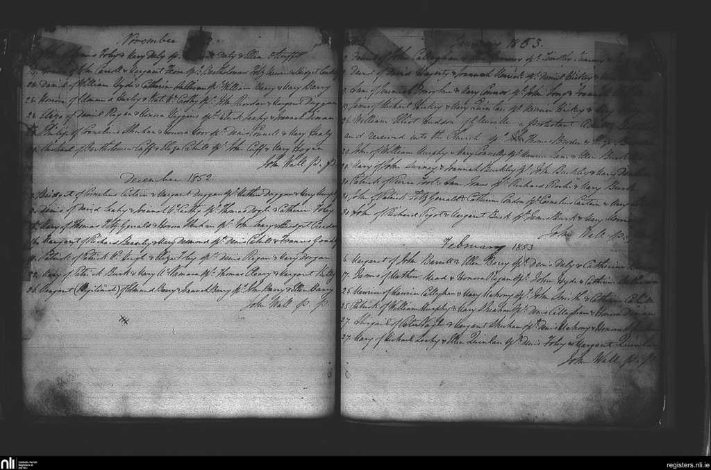 Watergrasshill; County of Cork; Diocese of Cork and Ross. Baptisms, Nov. 1852 to Feb. 1853