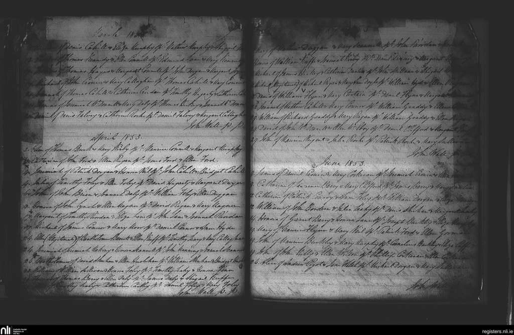 Watergrasshill; County of Cork; Diocese of Cork and Ross. Baptisms, Mar. 1853 to June 1853