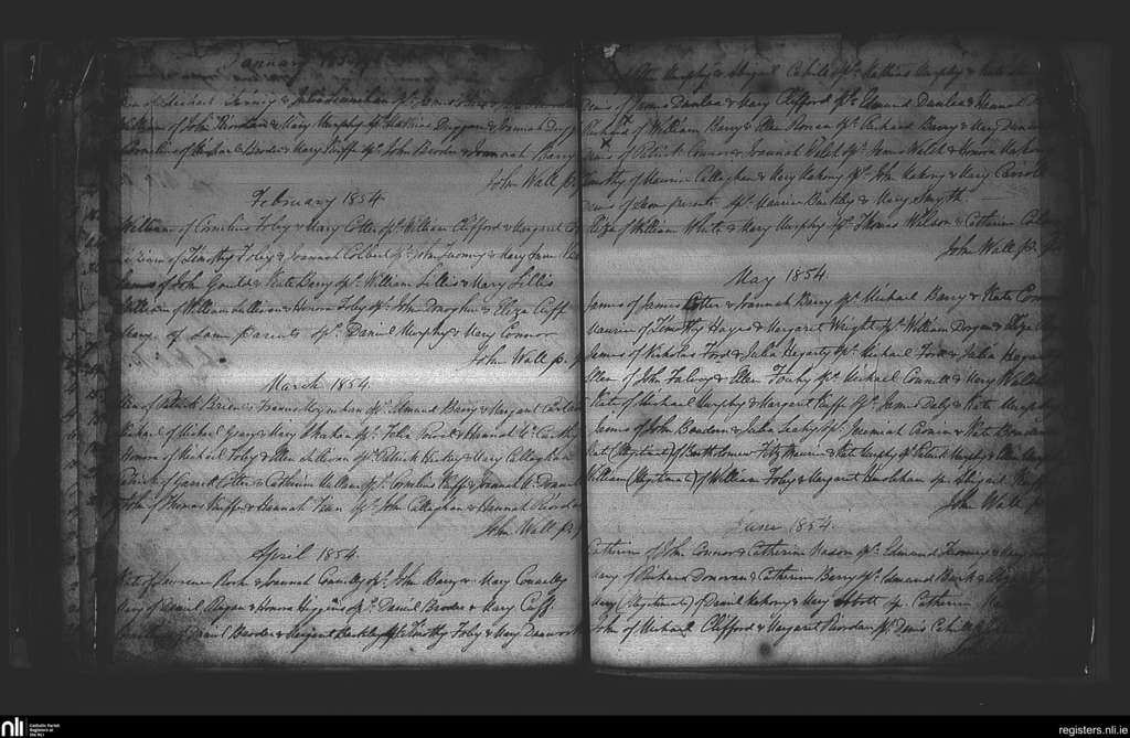 Watergrasshill; County of Cork; Diocese of Cork and Ross. Baptisms, Jan. 1854 to June 1854