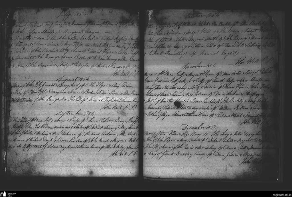 Watergrasshill; County of Cork; Diocese of Cork and Ross. Baptisms, July 1854 to Dec. 1854