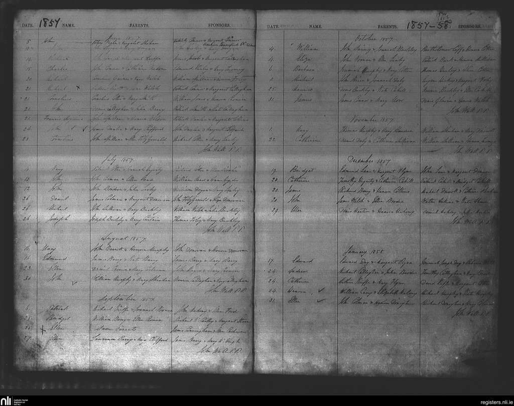 Watergrasshill; County of Cork; Diocese of Cork and Ross. Baptisms, June 1857 to Jan. 1858