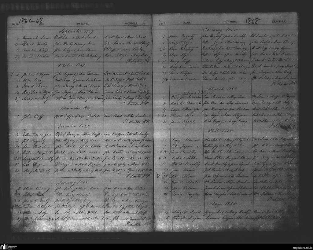 Watergrasshill; County of Cork; Diocese of Cork and Ross. Baptisms, Sep. 1867 to May 1868