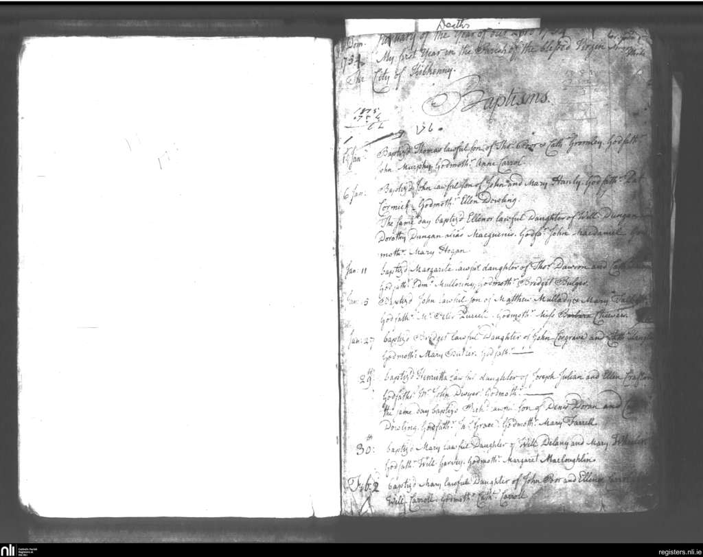St. Mary's, Kilkenny city; County of Kilkenny; Diocese of Ossory. Baptisms, Jan. 1754 to Feb. 1754