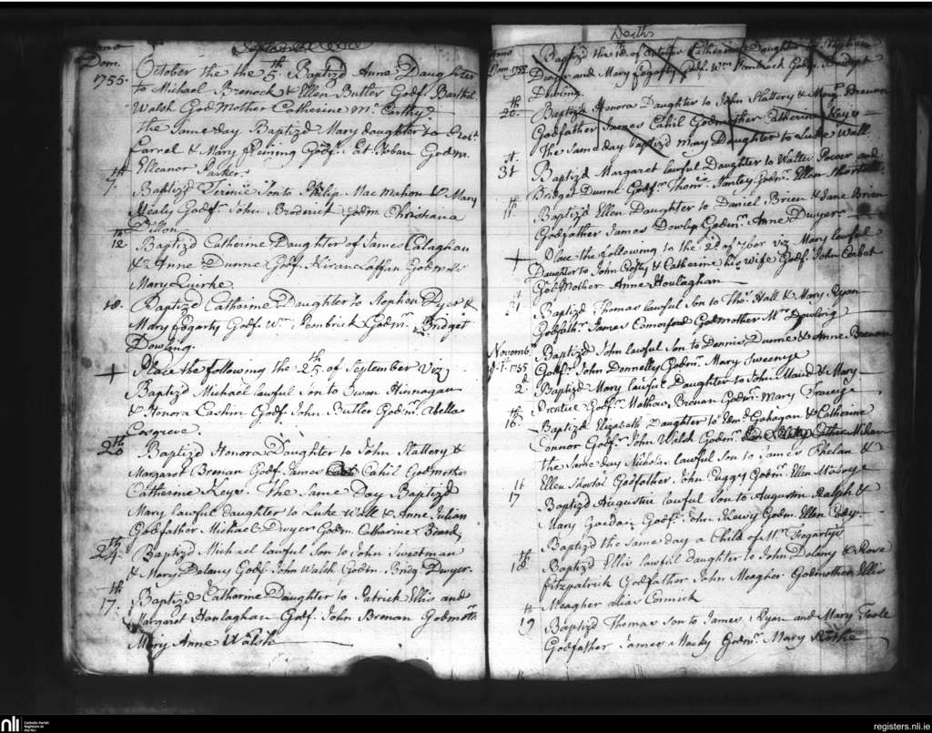 St. Mary's, Kilkenny city; County of Kilkenny; Diocese of Ossory. Baptisms, Oct. 1755 to Nov. 1755
