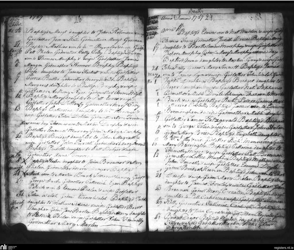 St. Mary's, Kilkenny city; County of Kilkenny; Diocese of Ossory. Baptisms, Feb. 1757 to May 1757