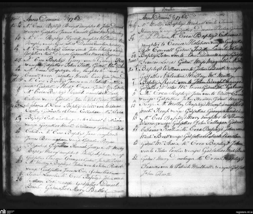 St. Mary's, Kilkenny city; County of Kilkenny; Diocese of Ossory. Baptisms, Apr. 1762 to June 1762