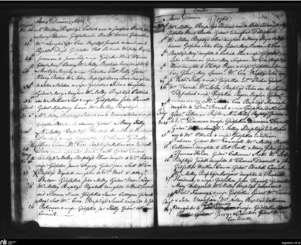 St. Mary's, Kilkenny city; County of Kilkenny; Diocese of Ossory. Baptisms, Mar. 1763 to Aug. 1763