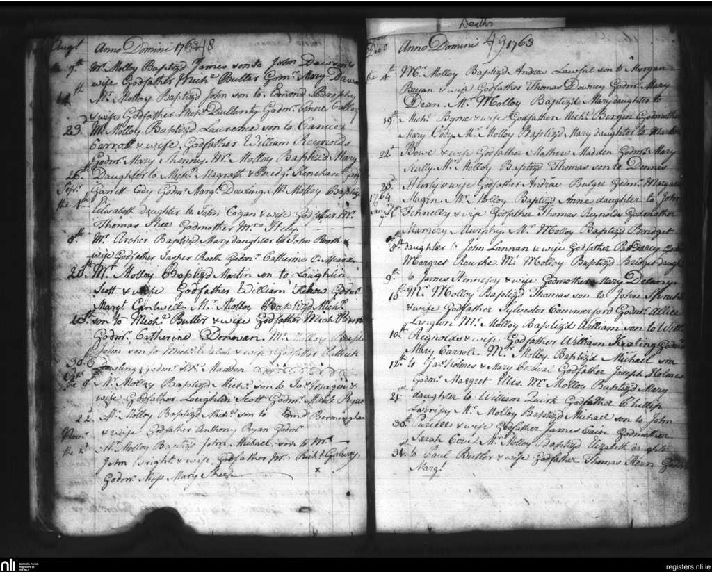 St. Mary's, Kilkenny city; County of Kilkenny; Diocese of Ossory. Baptisms, Aug. 1763 to Jan. 1764