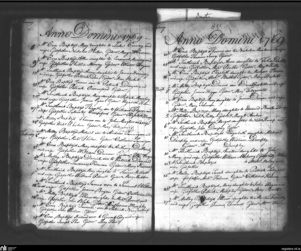 St. Mary's, Kilkenny city; County of Kilkenny; Diocese of Ossory. Baptisms, Jan. 1769 to Mar. 1769