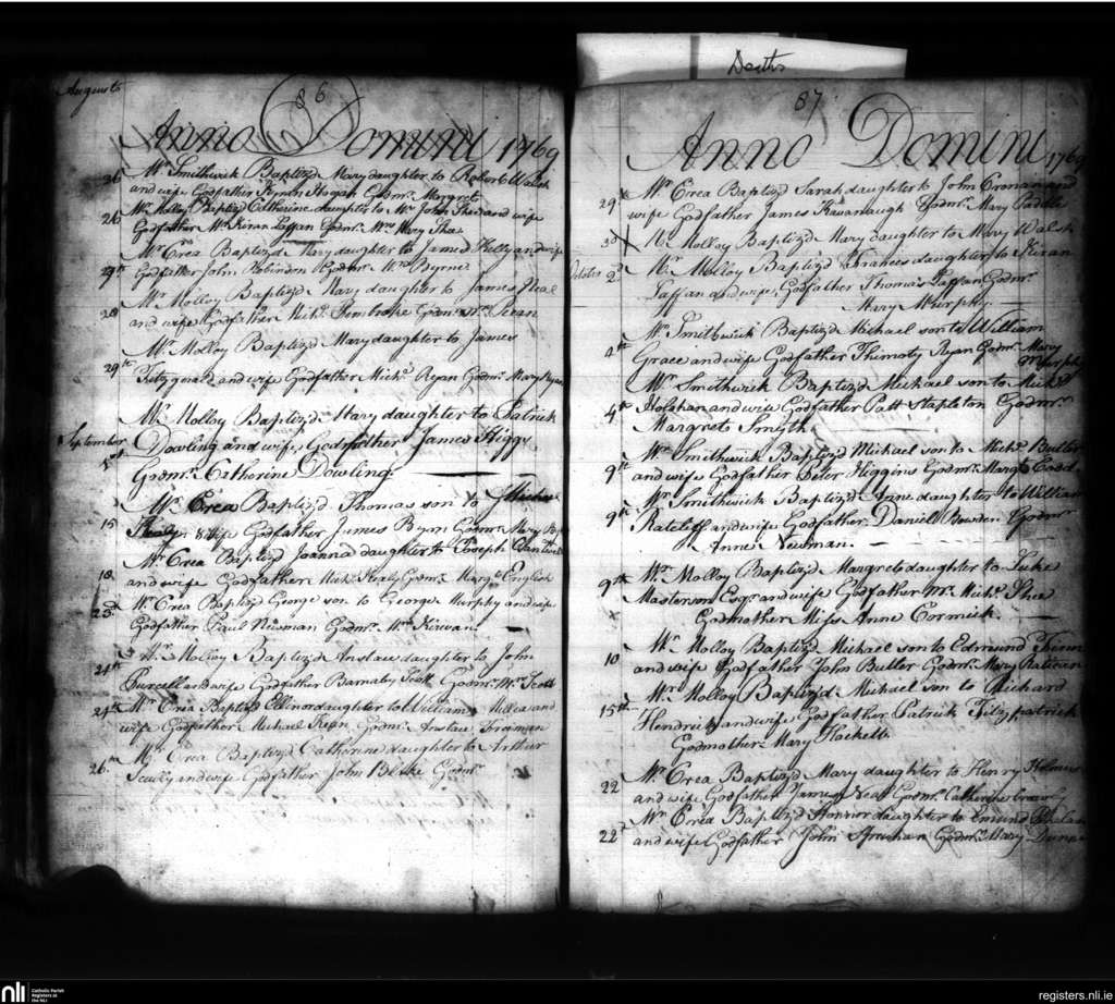 St. Mary's, Kilkenny city; County of Kilkenny; Diocese of Ossory. Baptisms, Aug. 1769 to Oct. 1769