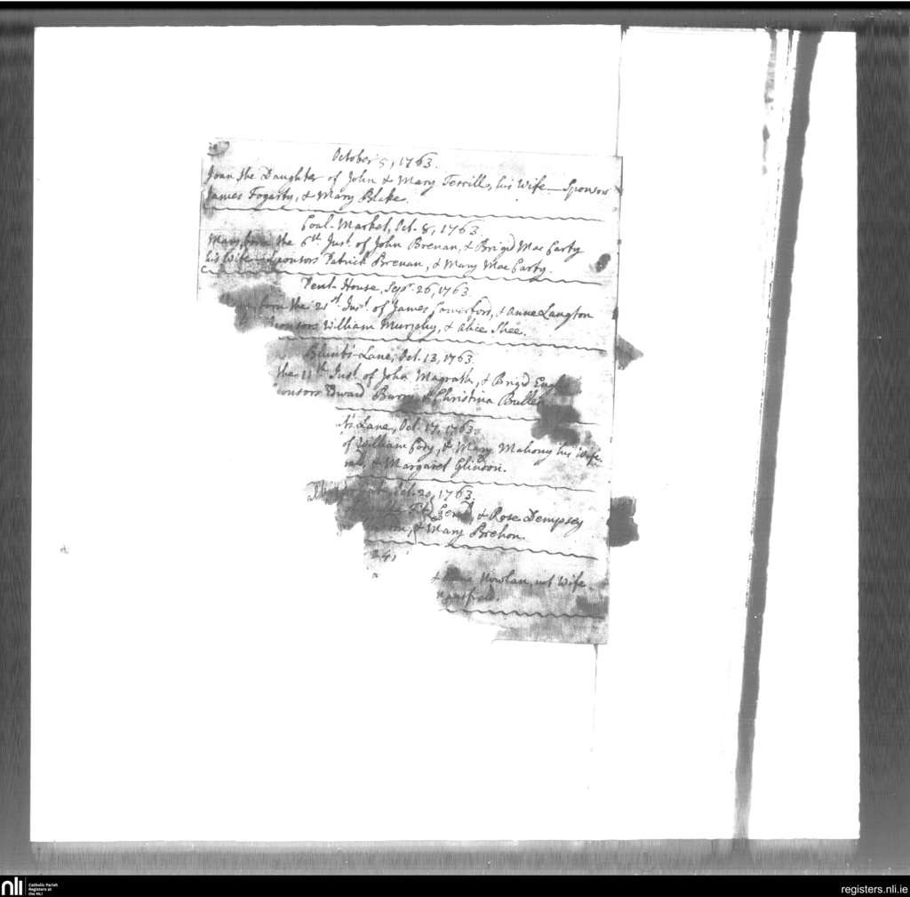 St. Mary's, Kilkenny city; County of Kilkenny; Diocese of Ossory. Baptisms, Sep. 1763 to Oct. 1763