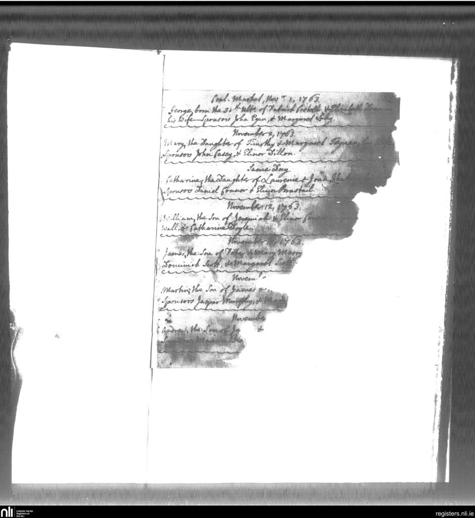 St. Mary's, Kilkenny city; County of Kilkenny; Diocese of Ossory. Baptisms, Nov. 1763