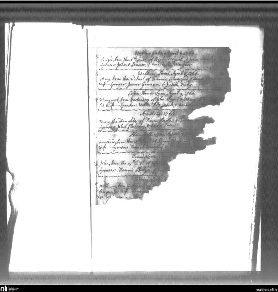 St. Mary's, Kilkenny city; County of Kilkenny; Diocese of Ossory. Baptisms, Apr. 1764