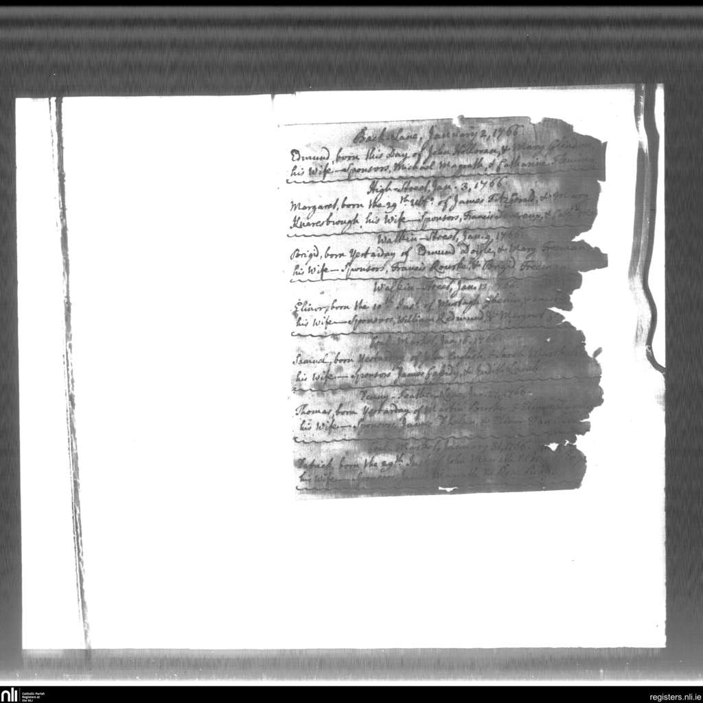St. Mary's, Kilkenny city; County of Kilkenny; Diocese of Ossory. Baptisms, Jan. 1766