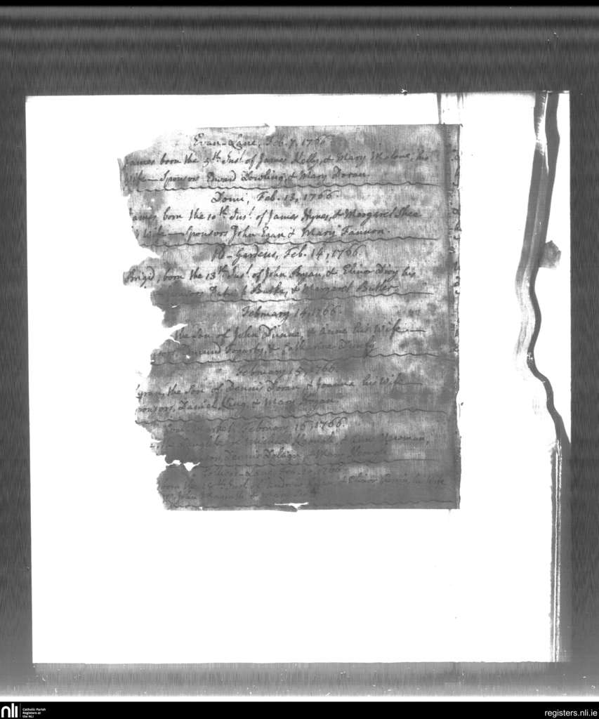St. Mary's, Kilkenny city; County of Kilkenny; Diocese of Ossory. Baptisms, Feb. 1766
