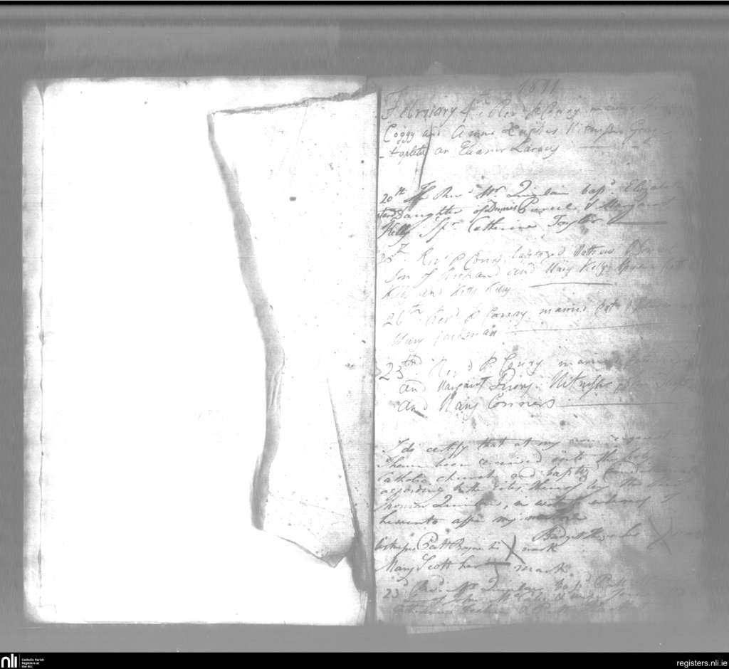 St. Mary's, Kilkenny city; County of Kilkenny; Diocese of Ossory. Baptisms, Marriages, Feb. 1811