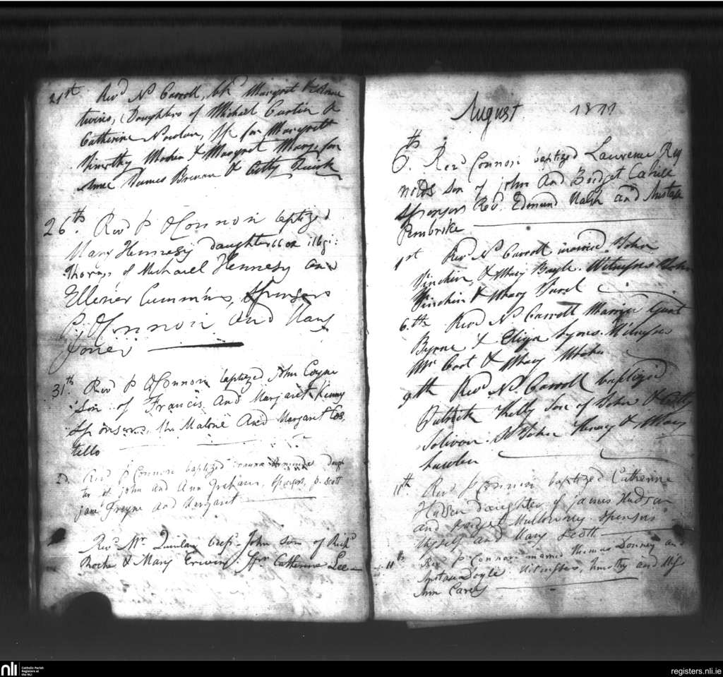 St. Mary's, Kilkenny city; County of Kilkenny; Diocese of Ossory. Baptisms, Marriages, July 1811 to Aug. 1811