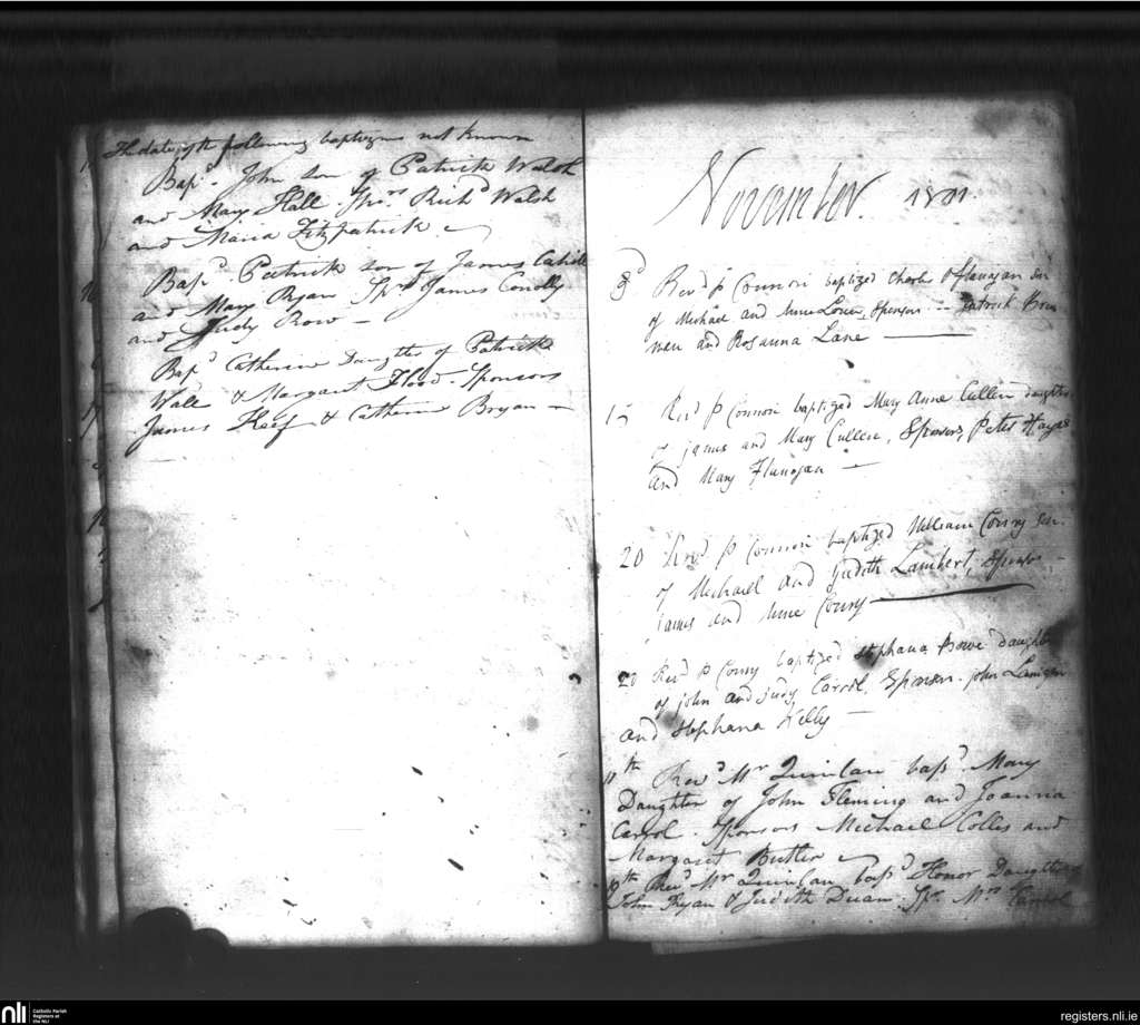 St. Mary's, Kilkenny city; County of Kilkenny; Diocese of Ossory. Baptisms, Marriages, Oct. 1811 to Nov. 1811