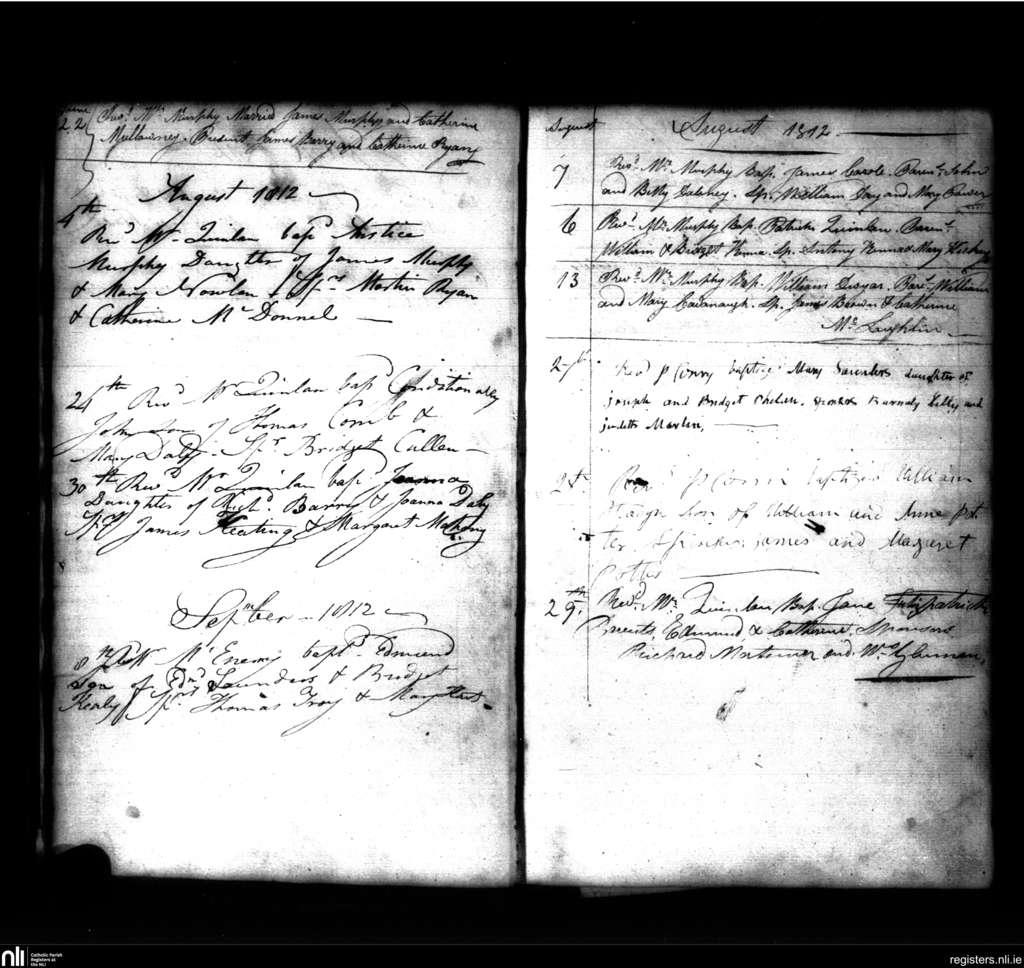 St. Mary's, Kilkenny city; County of Kilkenny; Diocese of Ossory. Baptisms, Marriages, June 1812 to Sep. 1812