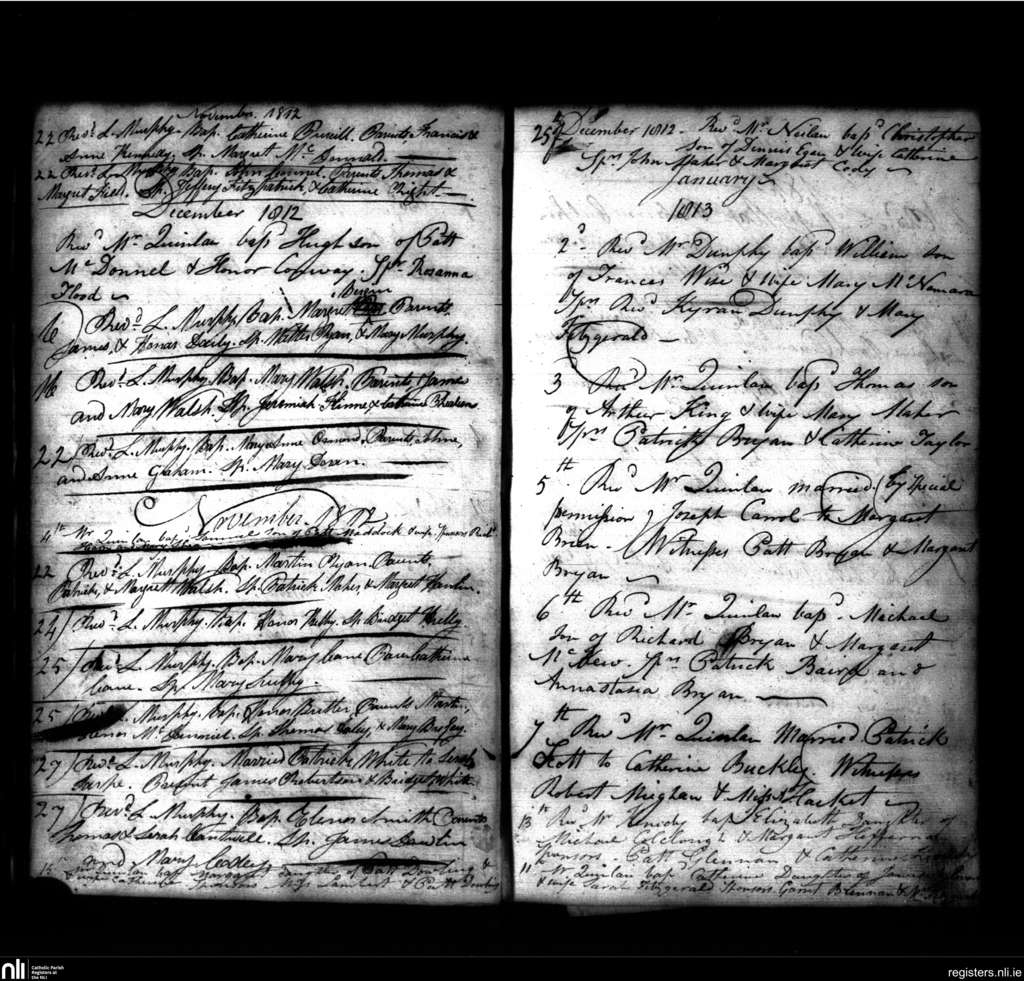 St. Mary's, Kilkenny city; County of Kilkenny; Diocese of Ossory. Baptisms, Marriages, Nov. 1812 to Jan. 1813