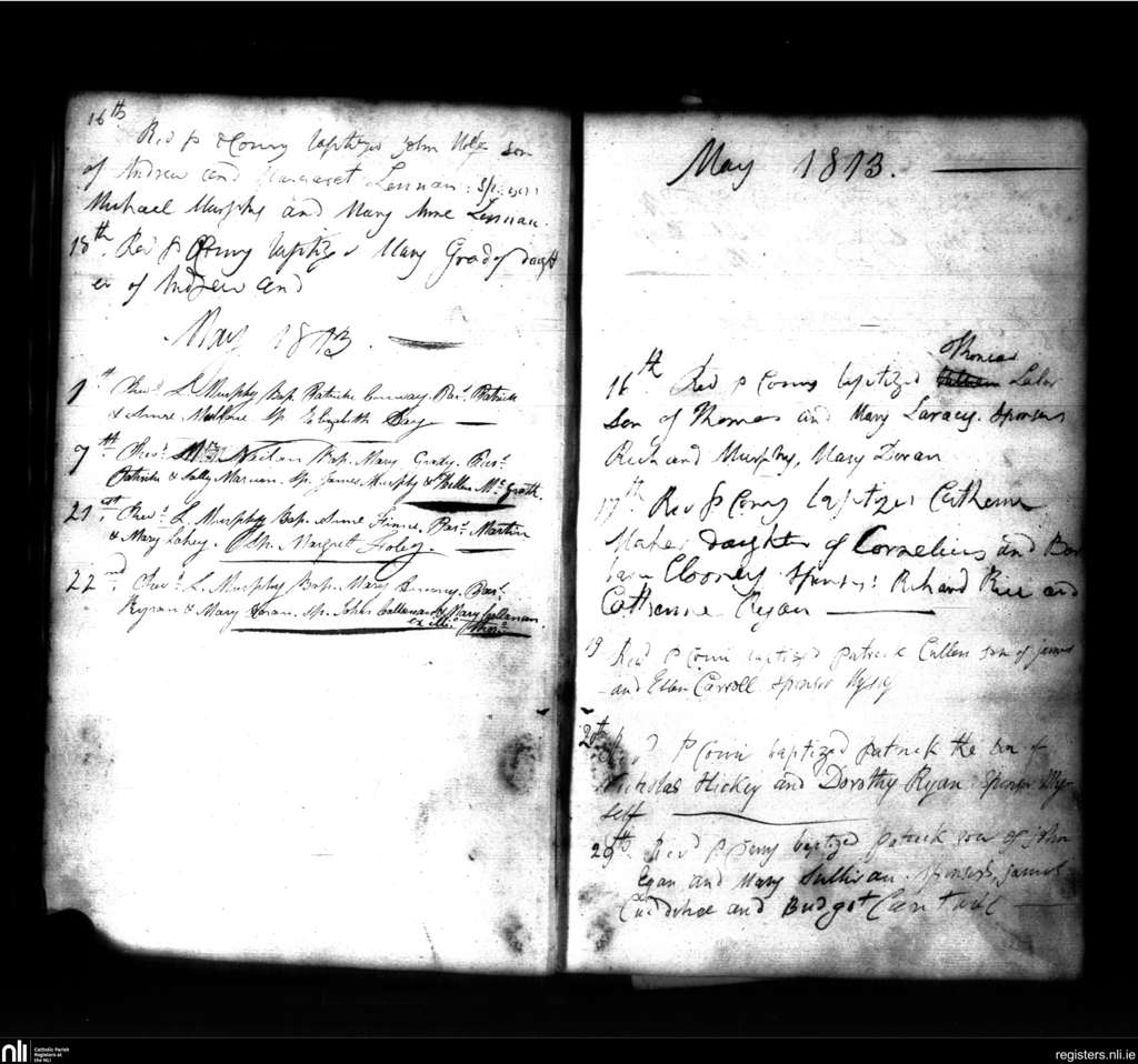 St. Mary's, Kilkenny city; County of Kilkenny; Diocese of Ossory. Baptisms, Marriages, May 1813