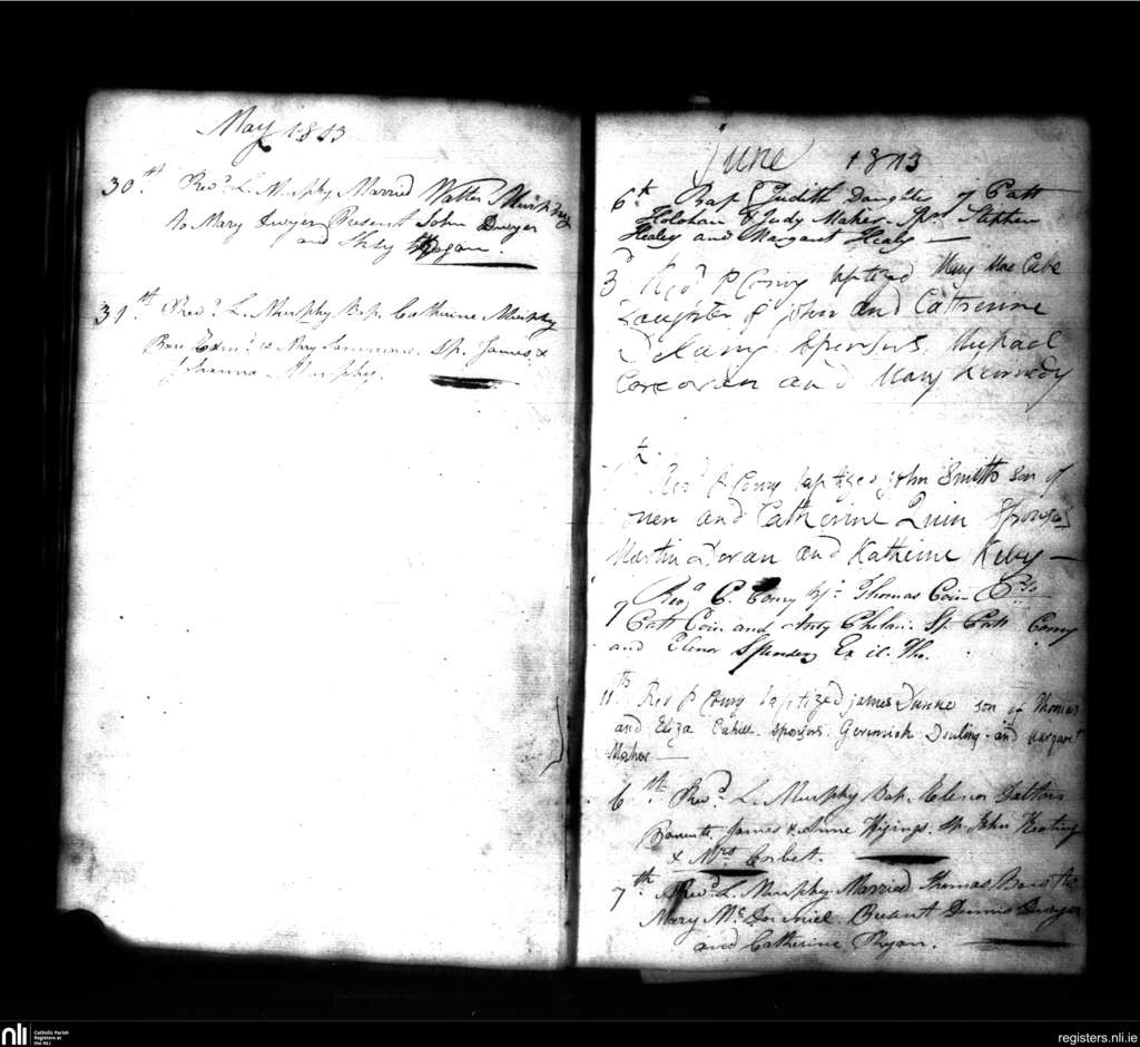 St. Mary's, Kilkenny city; County of Kilkenny; Diocese of Ossory. Baptisms, Marriages, May 1813 to June 1813