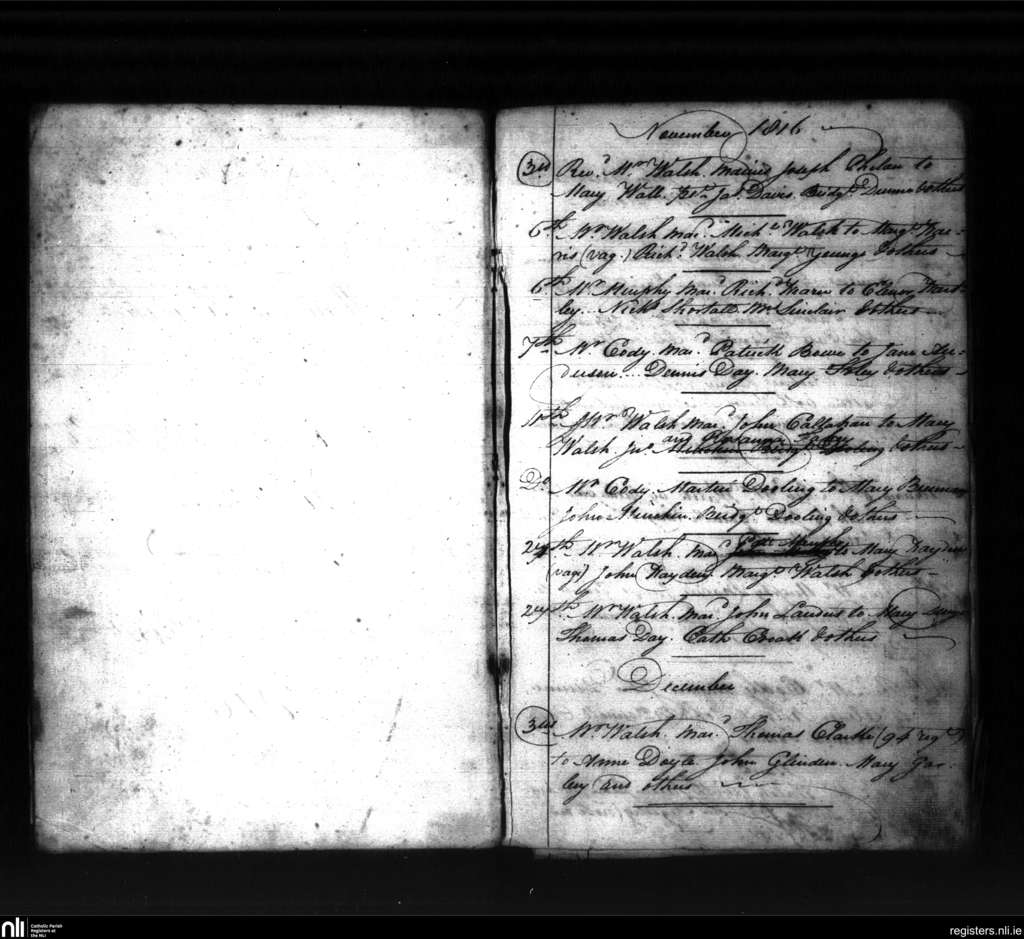 St. Mary's, Kilkenny city; County of Kilkenny; Diocese of Ossory. Marriages, Nov. 1816 to Dec. 1816