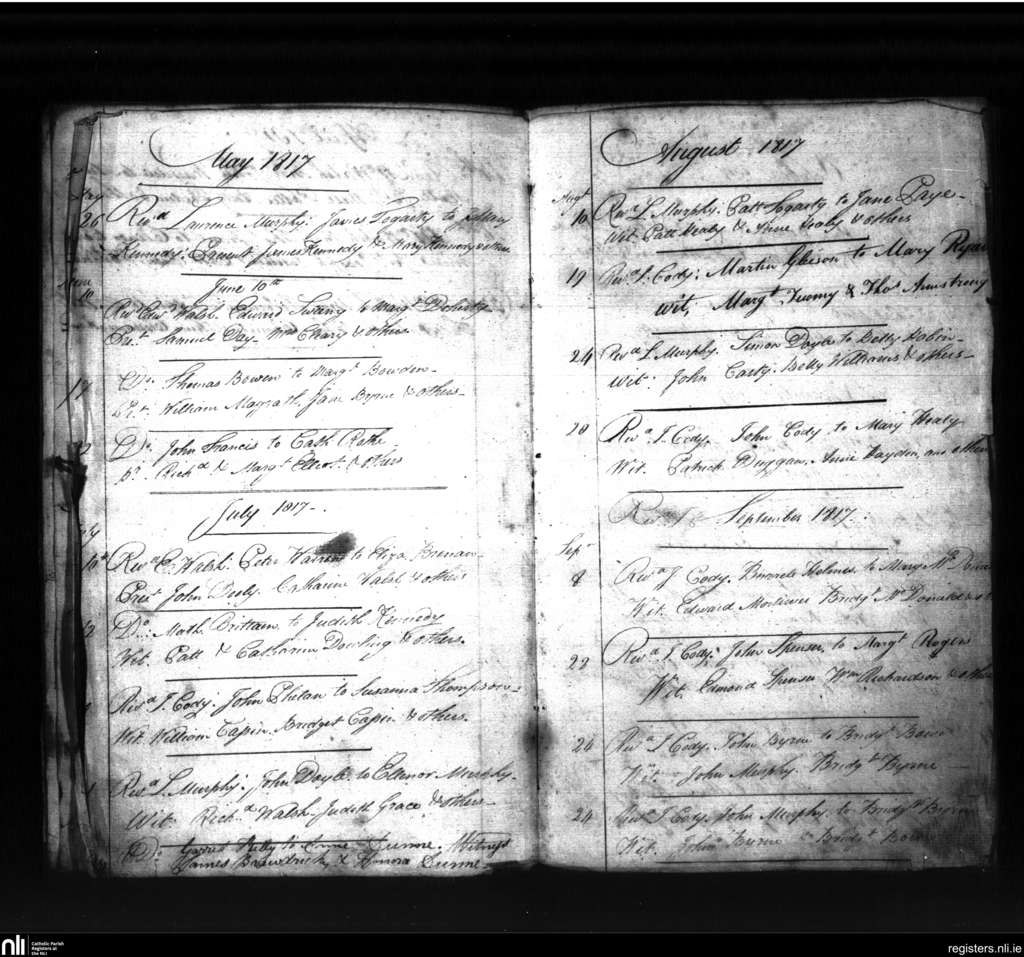 St. Mary's, Kilkenny city; County of Kilkenny; Diocese of Ossory. Marriages, May 1817 to Sep. 1817