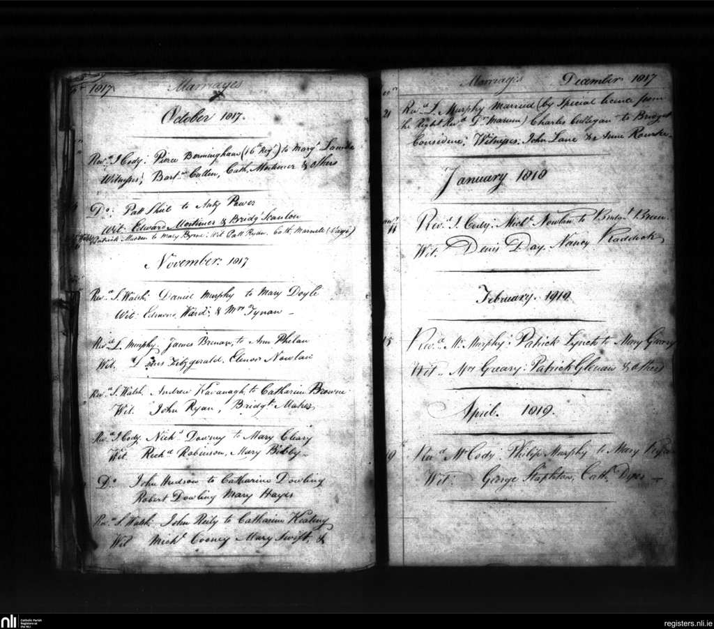 St. Mary's, Kilkenny city; County of Kilkenny; Diocese of Ossory. Marriages, Oct. 1817 to Apr. 1818