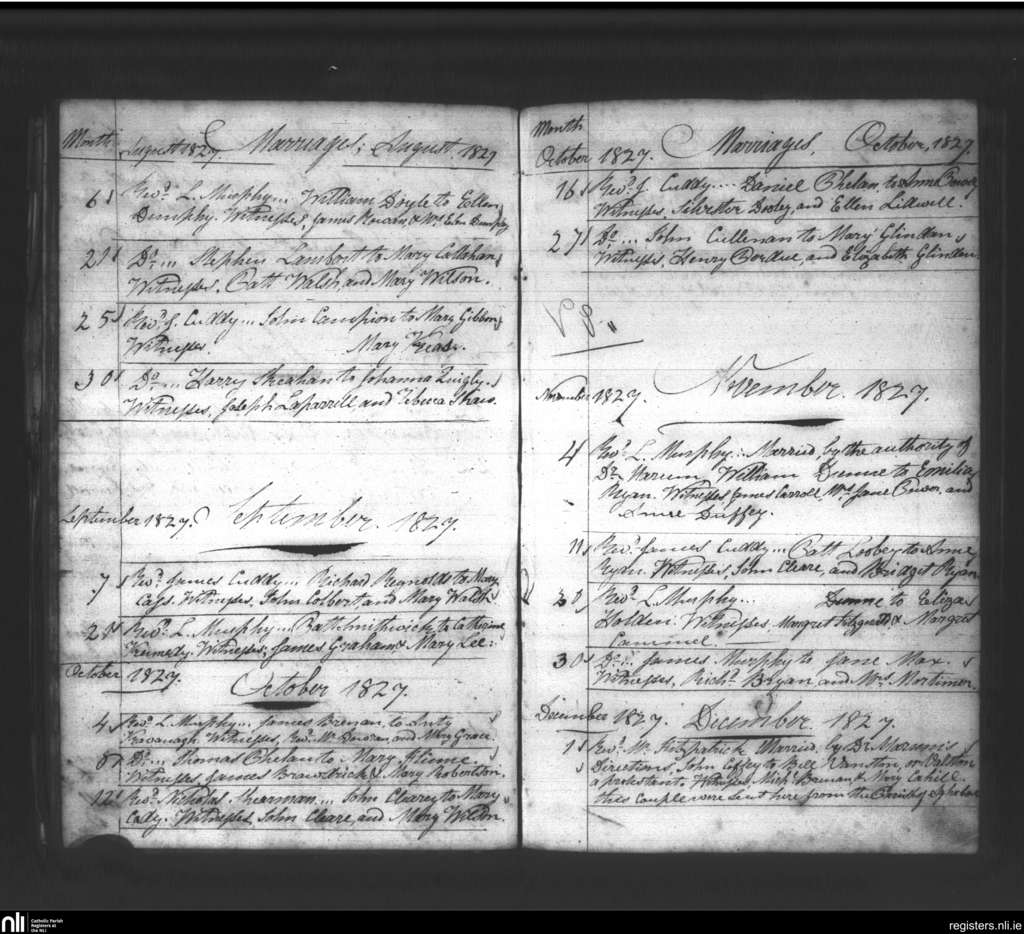 St. Mary's, Kilkenny city; County of Kilkenny; Diocese of Ossory. Marriages, Aug. 1827 to Dec. 1827