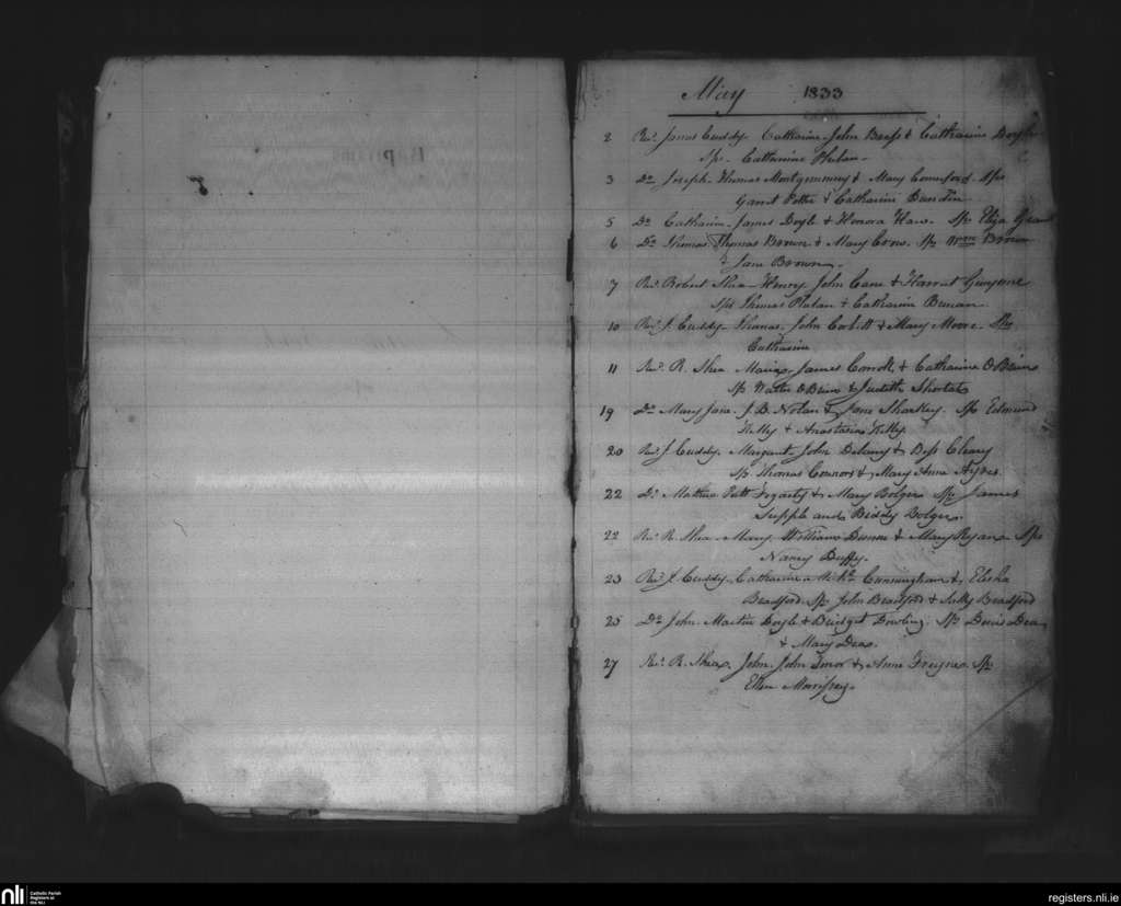 St. Mary's, Kilkenny city; County of Kilkenny; Diocese of Ossory. Baptisms, May 1833