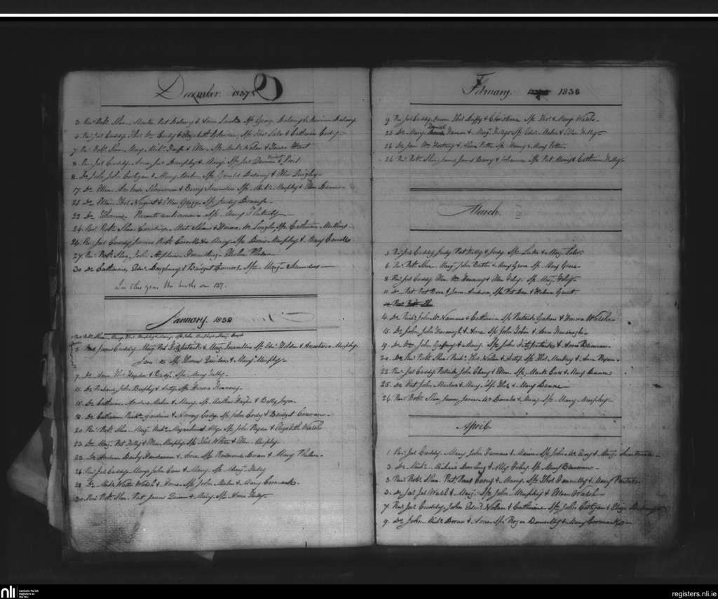 St. Mary's, Kilkenny city; County of Kilkenny; Diocese of Ossory. Baptisms, Dec. 1837 to Apr. 1838