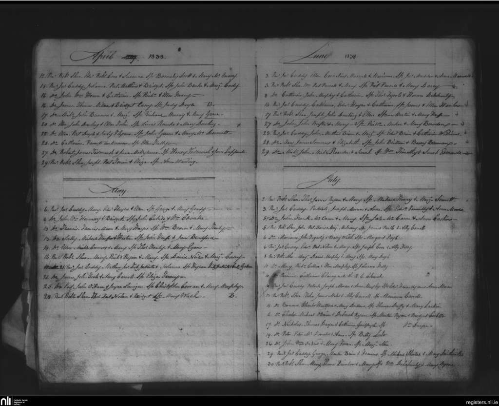 St. Mary's, Kilkenny city; County of Kilkenny; Diocese of Ossory. Baptisms, Apr. 1838 to July 1838