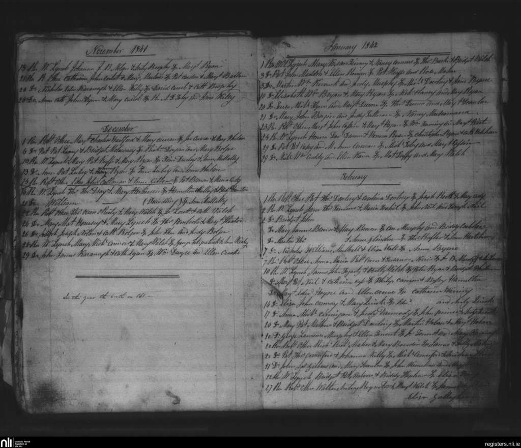 St. Mary's, Kilkenny city; County of Kilkenny; Diocese of Ossory. Baptisms, Nov. 1841 to Feb. 1842