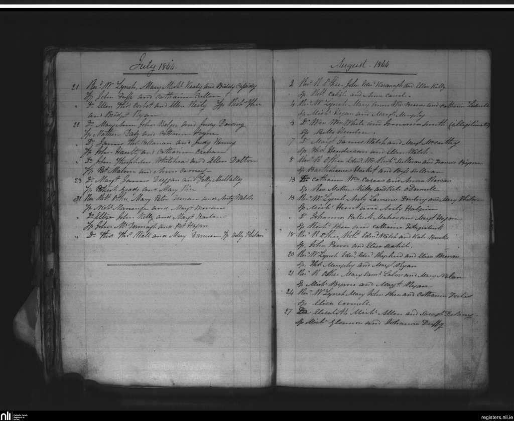 St. Mary's, Kilkenny city; County of Kilkenny; Diocese of Ossory. Baptisms, July 1844 to Aug. 1844