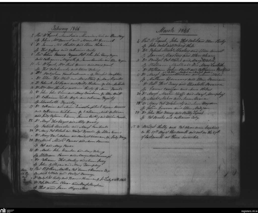 St. Mary's, Kilkenny city; County of Kilkenny; Diocese of Ossory. Baptisms, Feb. 1846 to Mar. 1846