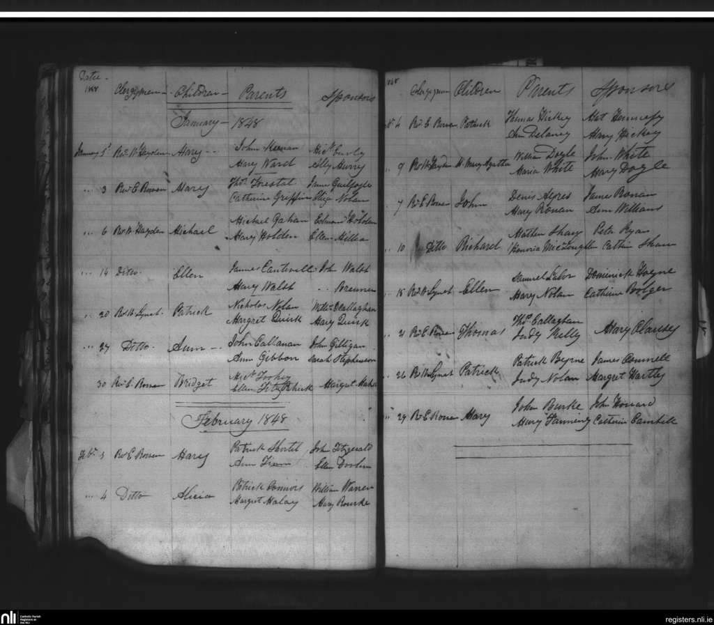 St. Mary's, Kilkenny city; County of Kilkenny; Diocese of Ossory. Baptisms, Jan. 1848 to Feb. 1848